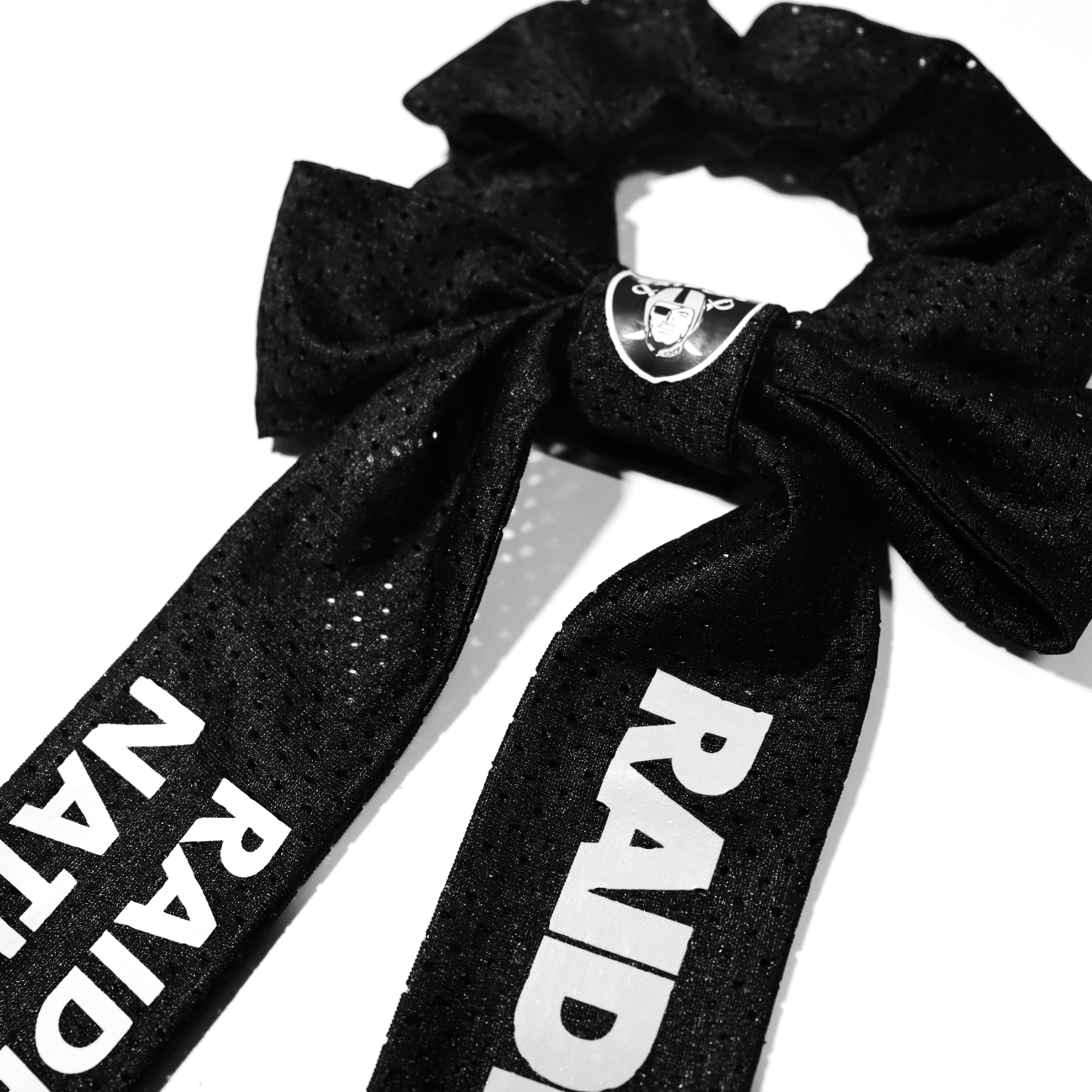Crafted from sport-mesh fabric with a throwback-inspired design that nods to vintage jerseys, the bow can be removed to reveal a sleek, solid scrunchie for a more understated look.